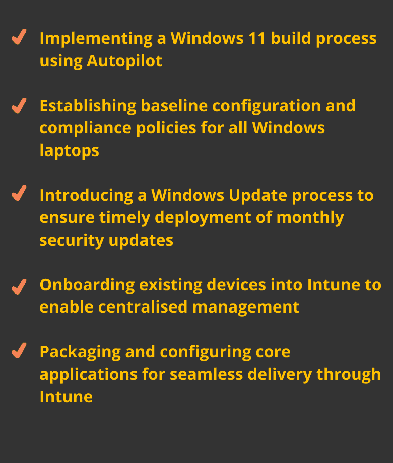 Spherica worked closely with the team to modernise and streamline device management. This included: